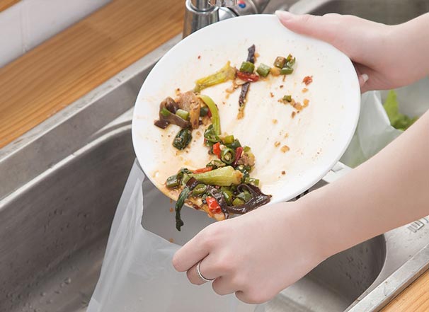 - Είτε πρόκειται για αμυλούχα τρόφιμα είτε για ινώδεις τροφές, φροντίστε να πετάξετε όλα τα σωματίδια τροφής στα σκουπίδια και να καθαρίσετε από τροφές σωστά τα πιάτα πριν τα πλύνετε στον νεροχύτη.